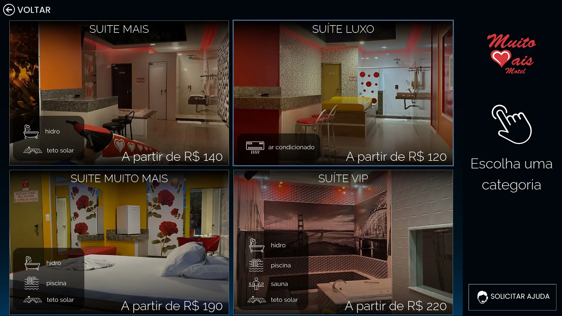 Todas as nossas suítes possuem teto solar, duas TVs grandes, ar